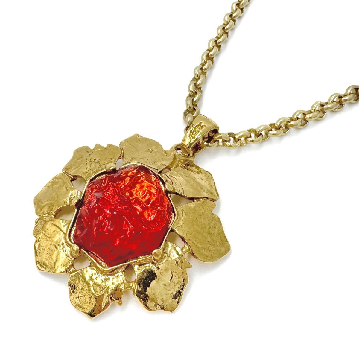 - イヴサンローラン ネックレス フラワー カラーストーン ゴールド レッド