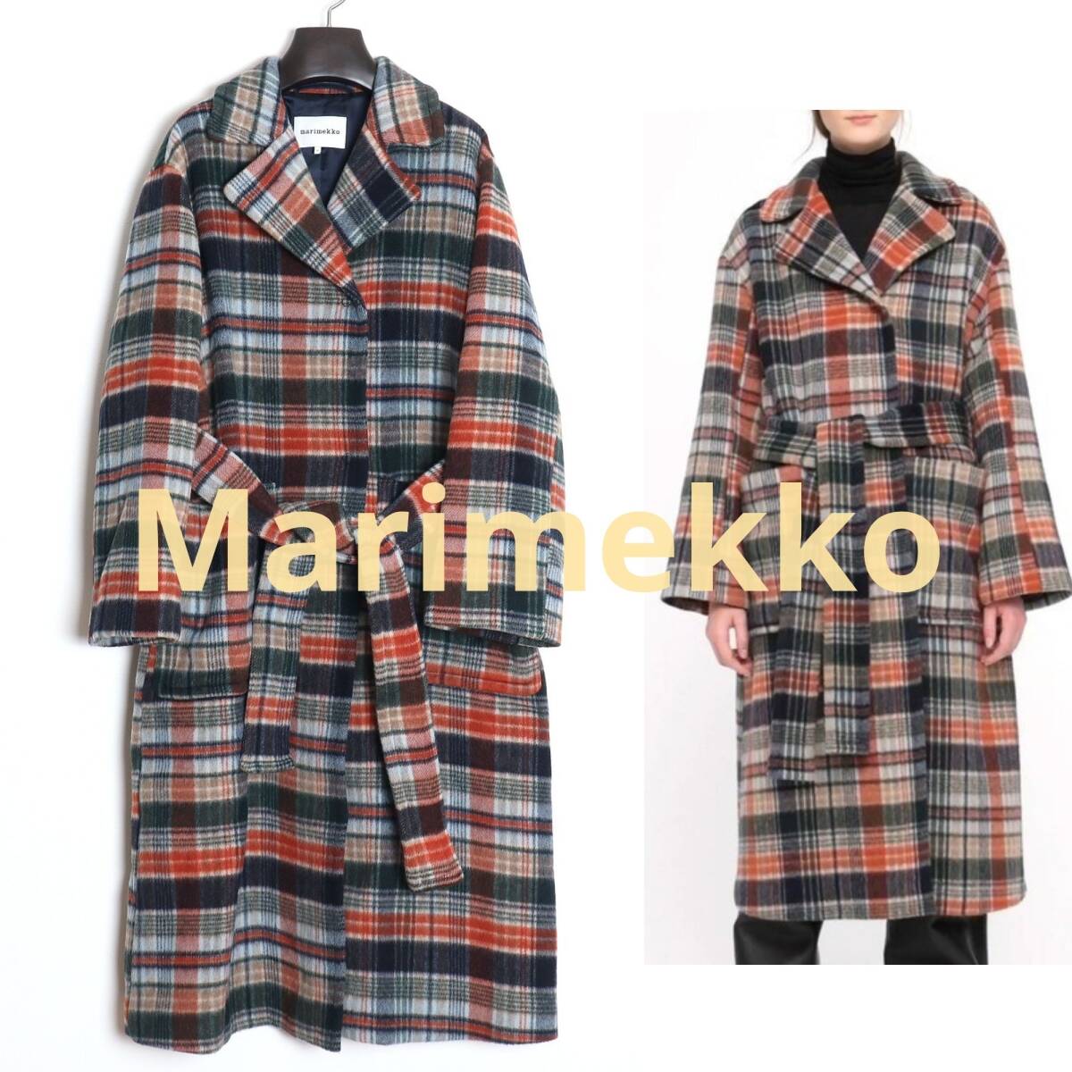 > Marimekko KITARA NUOTIO COATS 38 マリメッコ キタラ ウールメルトン ベルテッド コート ステンカラー チェック柄 チェスター トレンチ