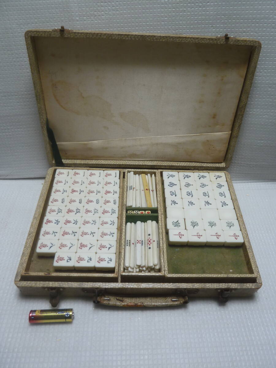 - 【ジャンク】 蛇柄ケース 不揃い 背竹牌 マージャン牌 麻雀牌 昭和レトロ