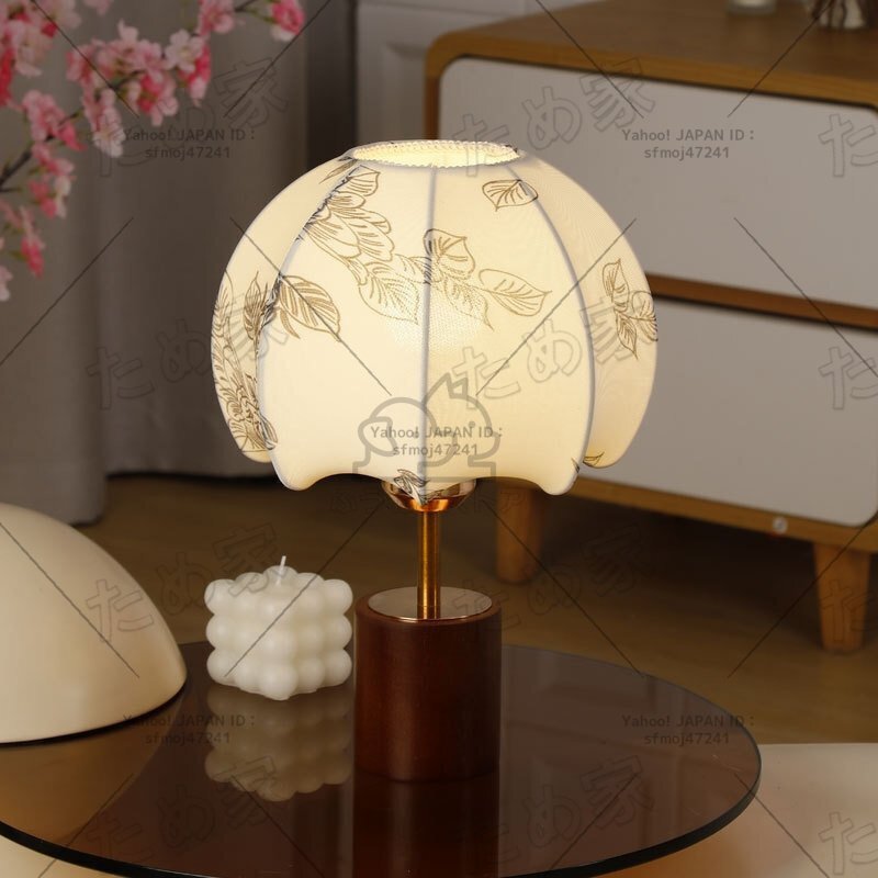 - 01 テーブル照明 ウッドベース照明 テーブルランプ テーブルスタンドライト 照明器具 レトロ 高級感 布製ランプシェード