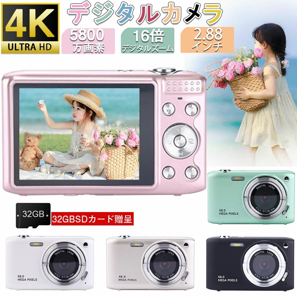 - デジタルカメラ 5800万画素 高画質 4K 防塵 軽量 2.88インチ 16倍ズーム 手ぶれ補正 キッズカメラ 耐衝撃 sdカード 海外旅行 修学旅行