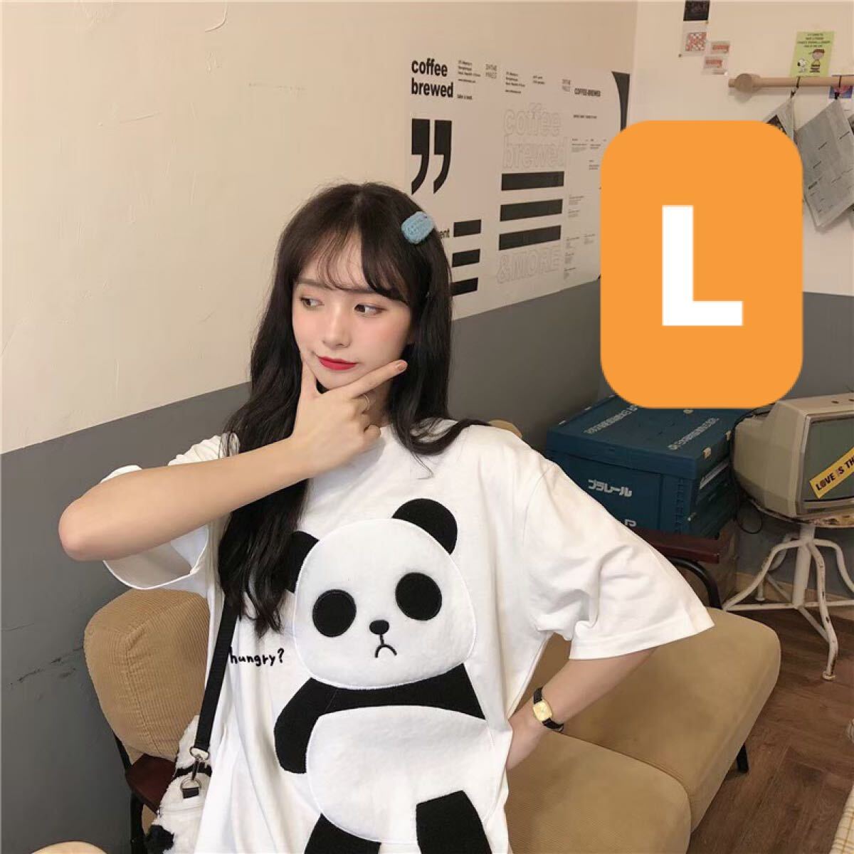 - Tシャツ ビッグシルエット 半袖 トップス カットソー パンダ シャツ オーバーサイズ トレンド ストリート 人気 ぱんだ ホワイト 白 L