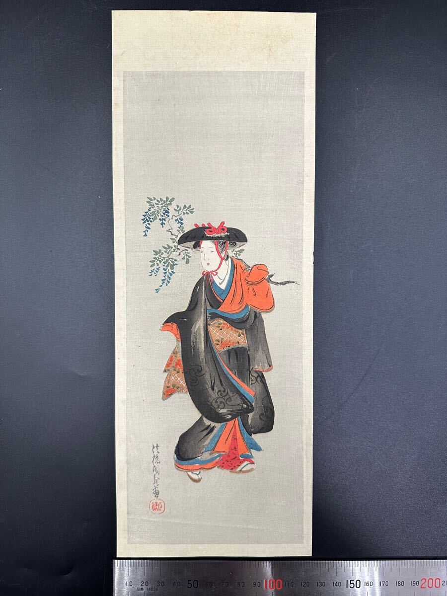 - 【真作】大正期 浮世絵木版画 法橋「藤娘図」美人画 中判 錦絵 保存良い