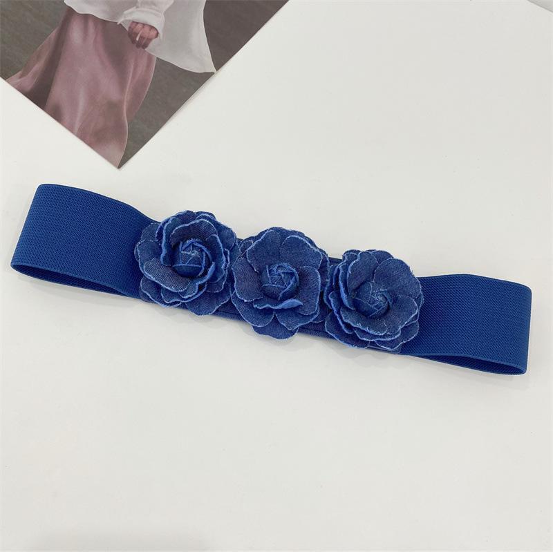 - 68cm~90cm 【ブルー花柄】 オシャレ レディースベルト