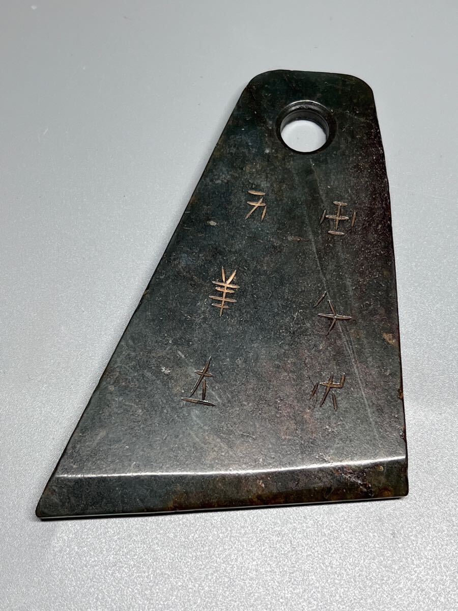 - 希少 高古玉器 本物和田碧玉 玉斧 玉戚 根付 大型 刻印あり 玉礼器 美品