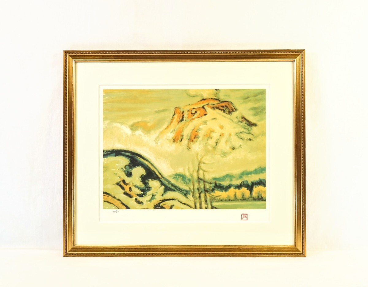 - 真作 小山敬三 リトグラフ「浅間山」画 45×33cm 長野県出身 日本芸術院会員 藤島武二に師事 軽井沢の別荘からの眺め 圧倒的な存在感 10359