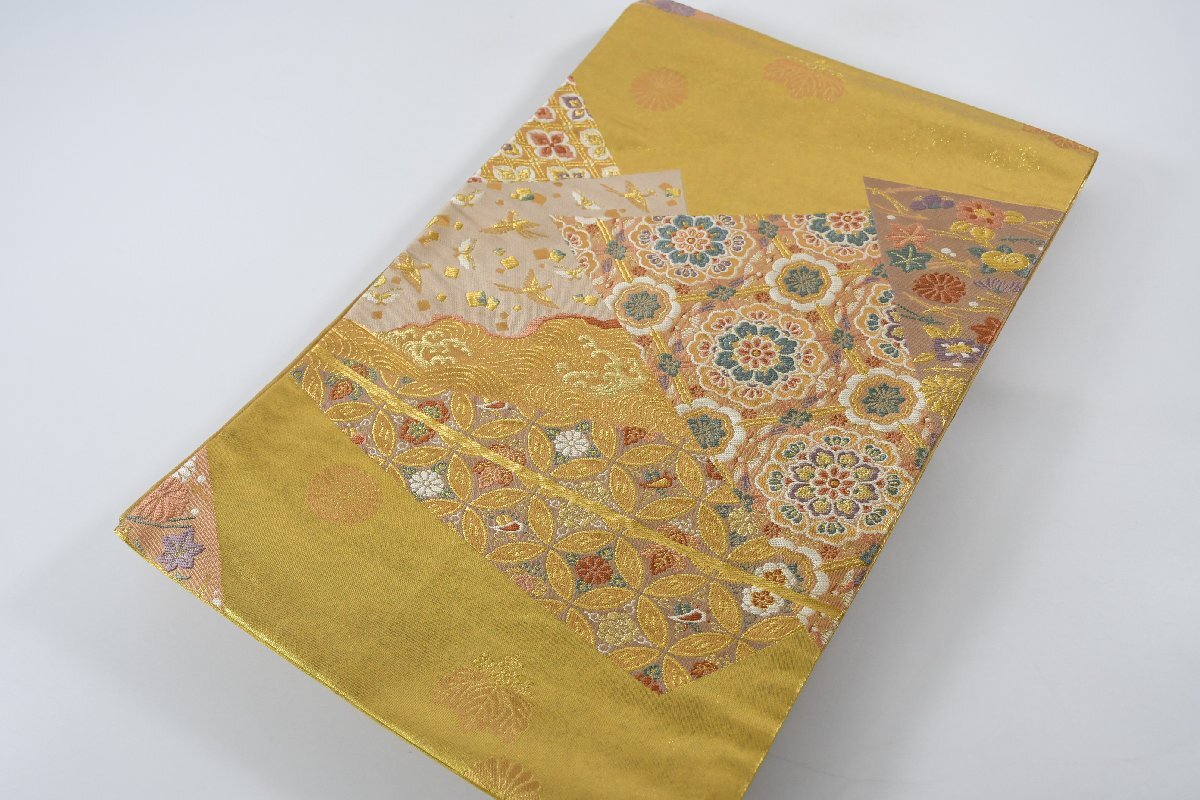 - 袋名古屋帯 金糸 更紗 幾何学模様 花 帯丈380cm ★着物屋 ne-14131 桜庭呉服店