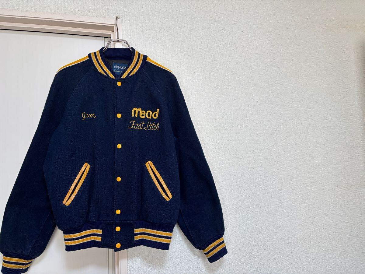 - 【送料込み】60s70sヴィンテージMADE IN USAアメリカ製Hollowayホロウェイネイビーボディースタジアムジャンパースタジャンsize M