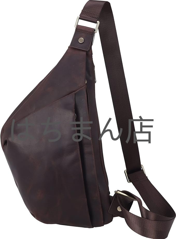 - 雅革 極薄 本革 ボディバッグ メンズ ワンショルダーバッグ 子牛革 斜めがけ スリングバッグ チェストバッグ 軽量で大容量 ダークブラウン