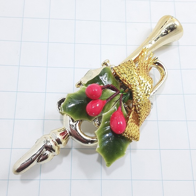 - 送料無料)ビンテージ☆柊モチーフ☆アンティーク ブローチ A28268
