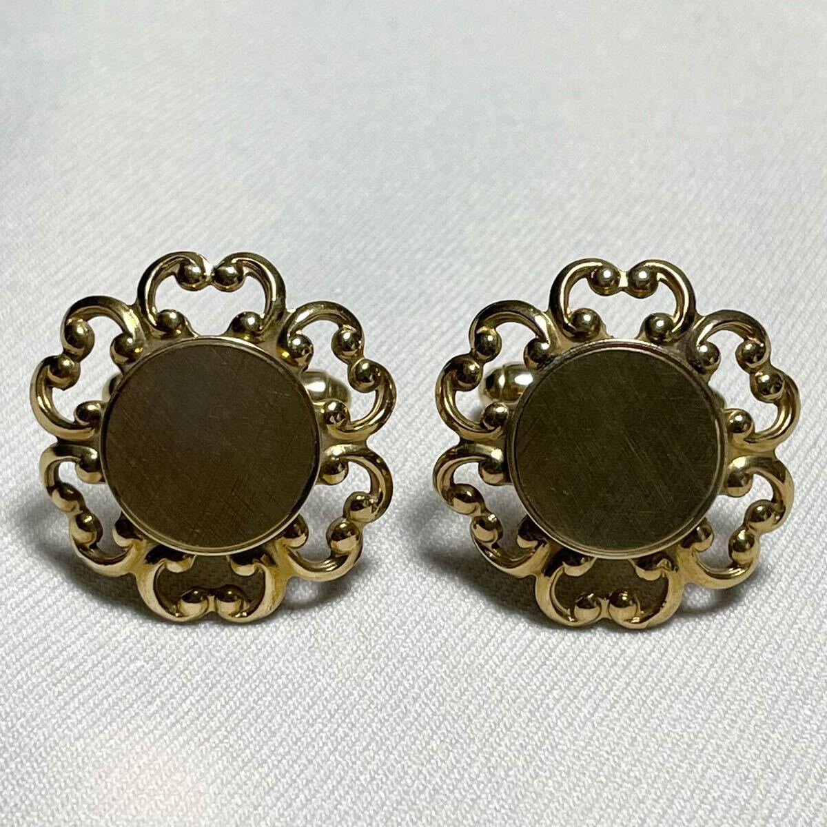 - ブローチ型カフリンクス アンティークゴールド カフスボタン カフス