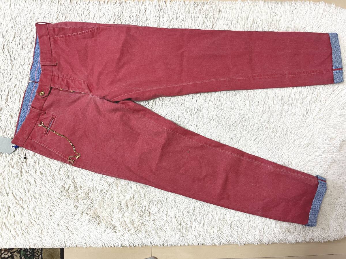 - メンズ48サイズ:SANTANIELLO サンタニエッロ◆イタリア製*チェーン付き/ボタンフライパンツ:色褪せ赤
