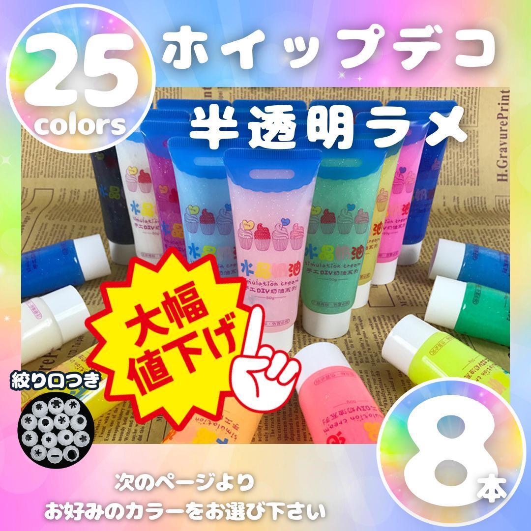 - ホイップデコ 半透明ラメ 8本 ホイップ ねんど 絞り口つき MnK0