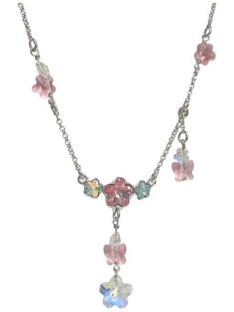 > スワロフスキー ネックレス ストーン SWAROVSKI フラワー 花柄 パステルカラー ビーズ シルバー レディース 【中古】
