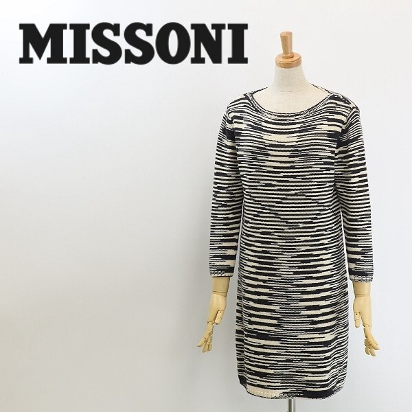- ◆MISSONI ミッソーニ ウール ニット ワンピース オフホワイト×ブラック 42
