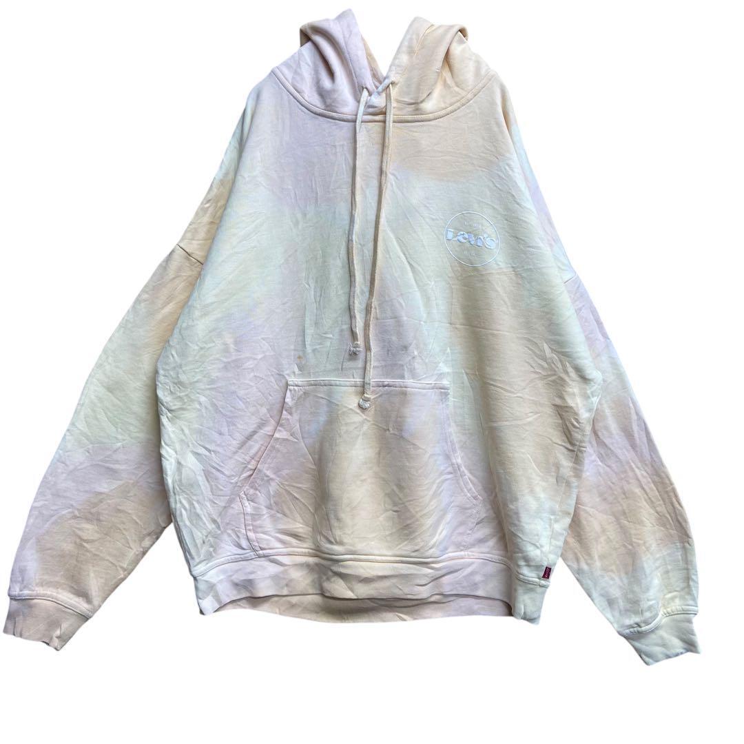 - リーバイス メンズパーカー M 薄橙 タイダイ模様 ポケット フーディ【2300