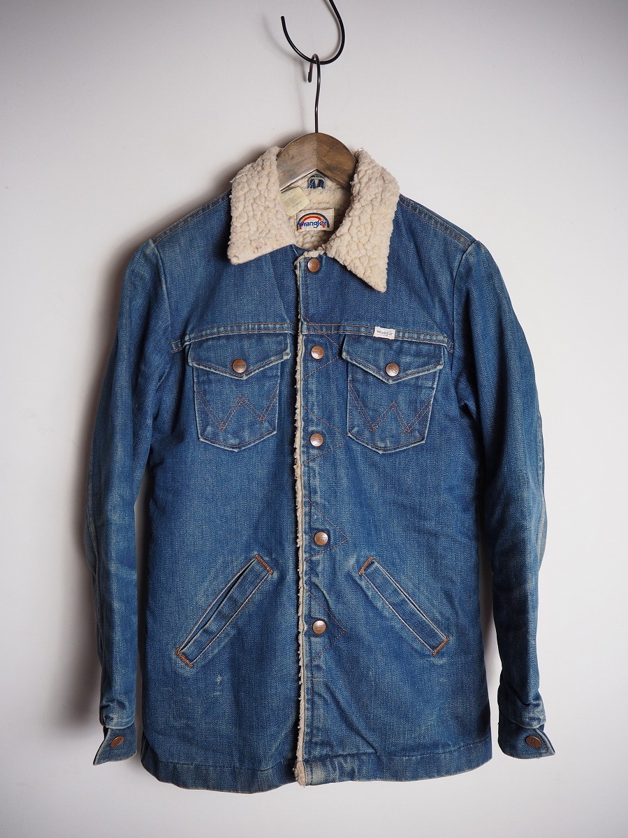 - 希少 70s ビンテージ Wrangler ラングラー デニム ランチ ランジ コート ボア ライナー ジャケット USA製 虹タグ レインボー 青 330O▲