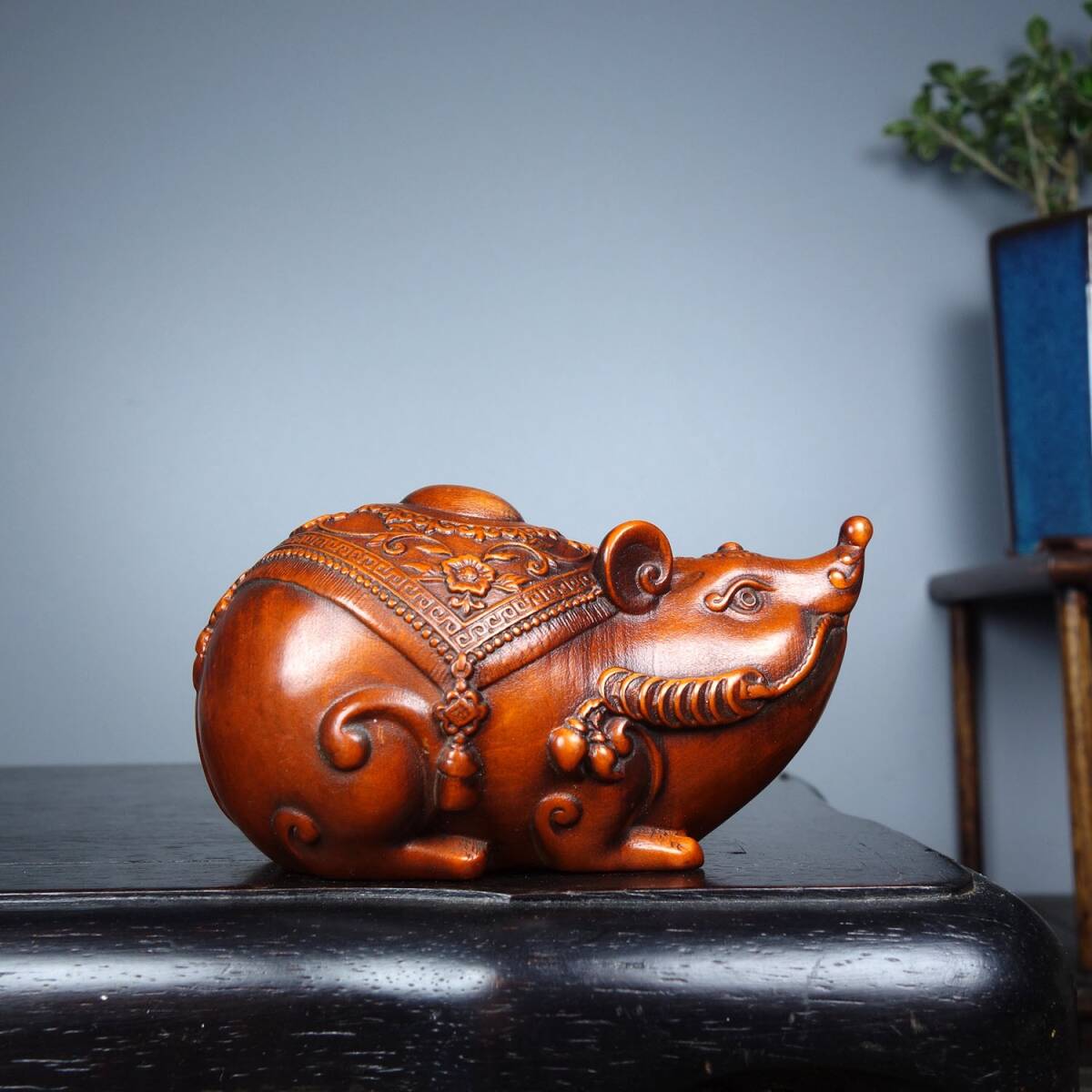 - 【超珍館蔵】黄楊木製 細密彫 招財鼠把把壺 置物 古賞物 古美術品 稀少珍蔵品