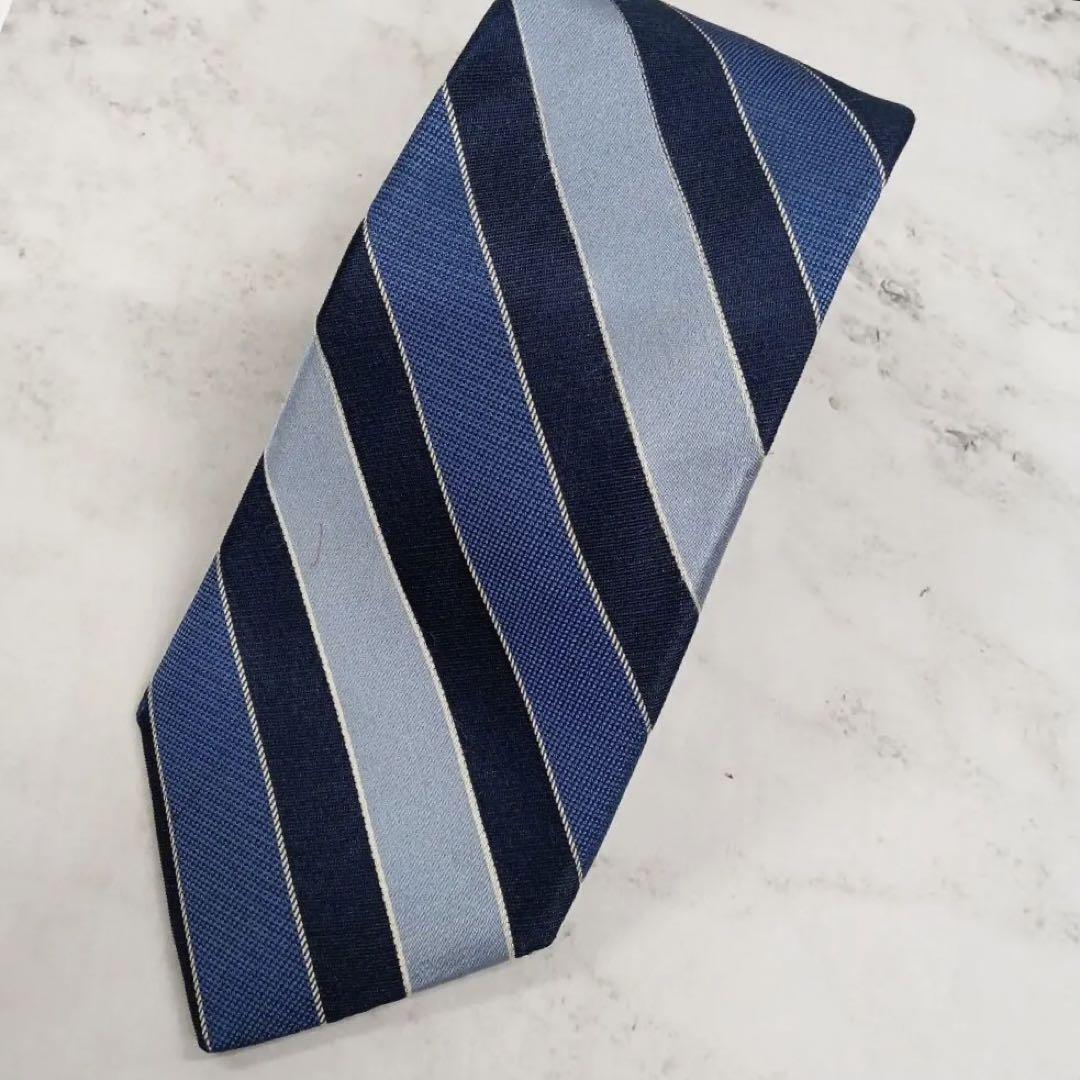 - フェアファクス ネクタイ 青 ストライプ シルク100% 絹 定番【n114】