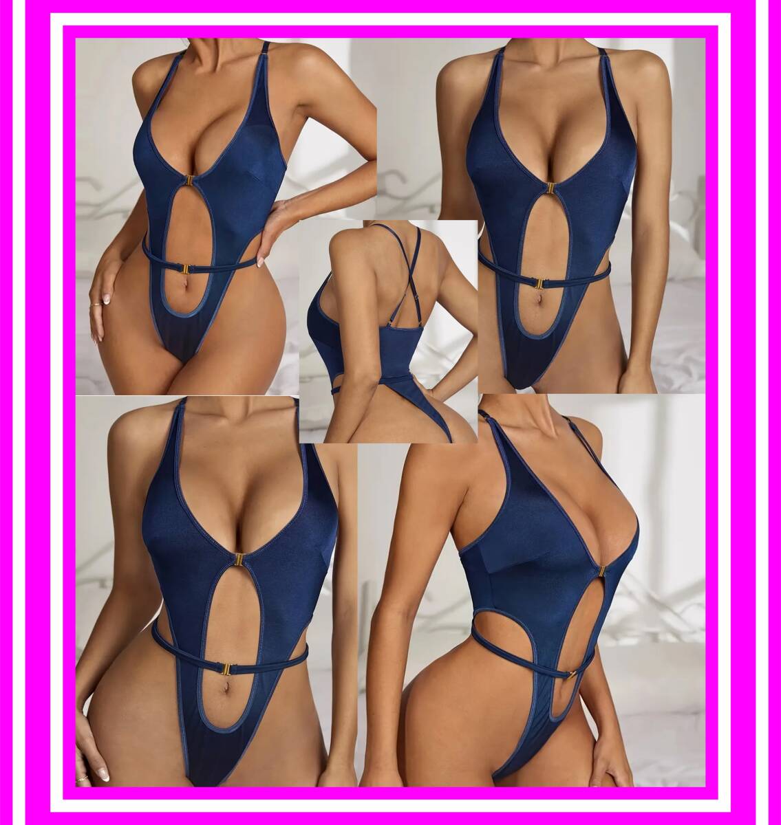 - ★超素敵★ボディスーツ★濃紺★ダークブルー★超柔らか素材★ウエストベルト★ハイレグ★大人美しい★P161