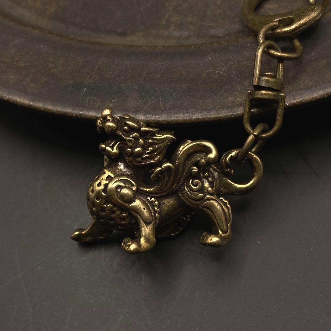 > 178 真鍮 キーホルダー 麒麟 キリン ビンテージ 風水 金運 開運 レトロ アンティーク 真鍮製 チャーム アクセサリー パーツ ハンドメイド