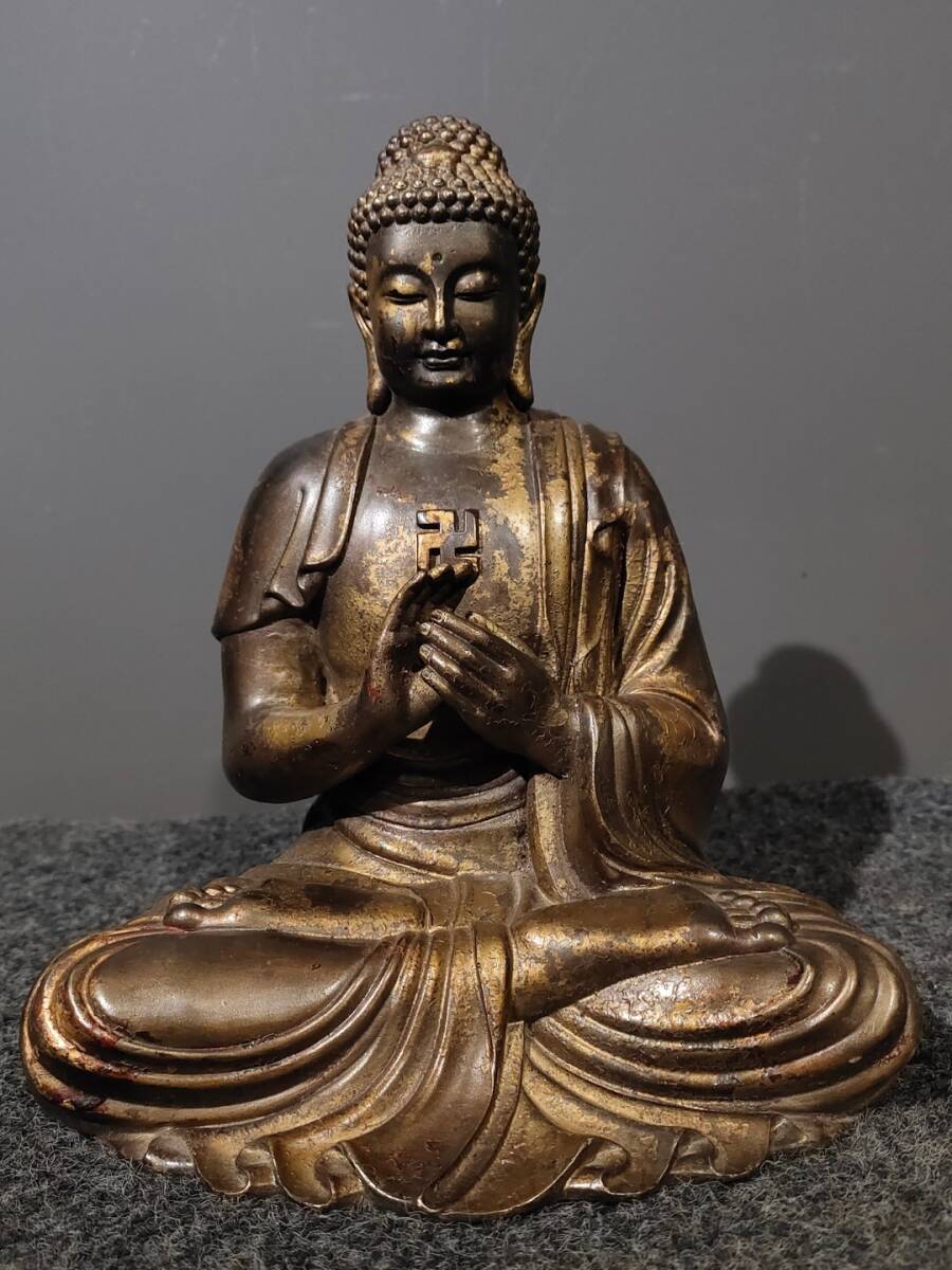 - 【超珍館蔵】銅製 泥金 朱砂 如來仏 置物 古賞物 古美術品 稀少珍蔵品