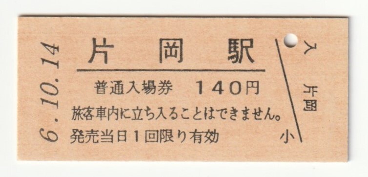 - 平成6年10月14日 東北本線 片岡駅 140円硬券普通入場券(日付印刷)