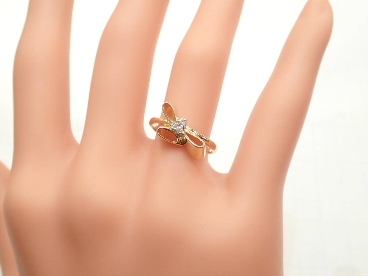 - ■K18コンビダイヤモンドリボン型ファッションリング■指輪■磨き仕上げ■美品中古■