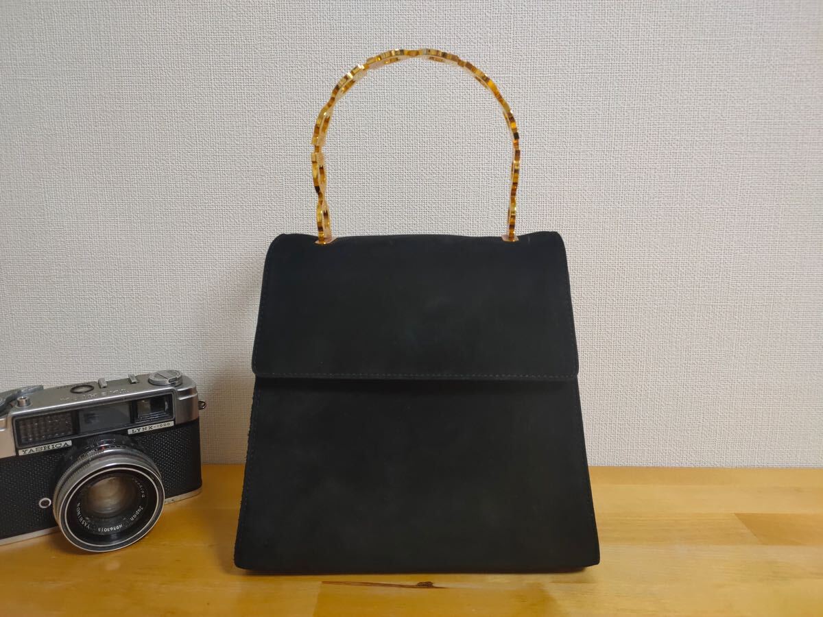 - 本物美品【フェラガモ】Ferragamo スエード ガンチーニ ハンドバッグ ブラック ヴィンテージ