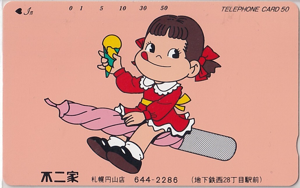 - =不二家ペコちゃん= 「札幌円山 西28丁目駅前」販売テレカ #w