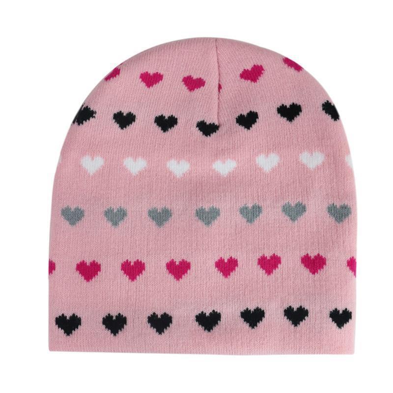 - 【ピンク色】ハート柄ニット キャップ レディース秋冬可愛い