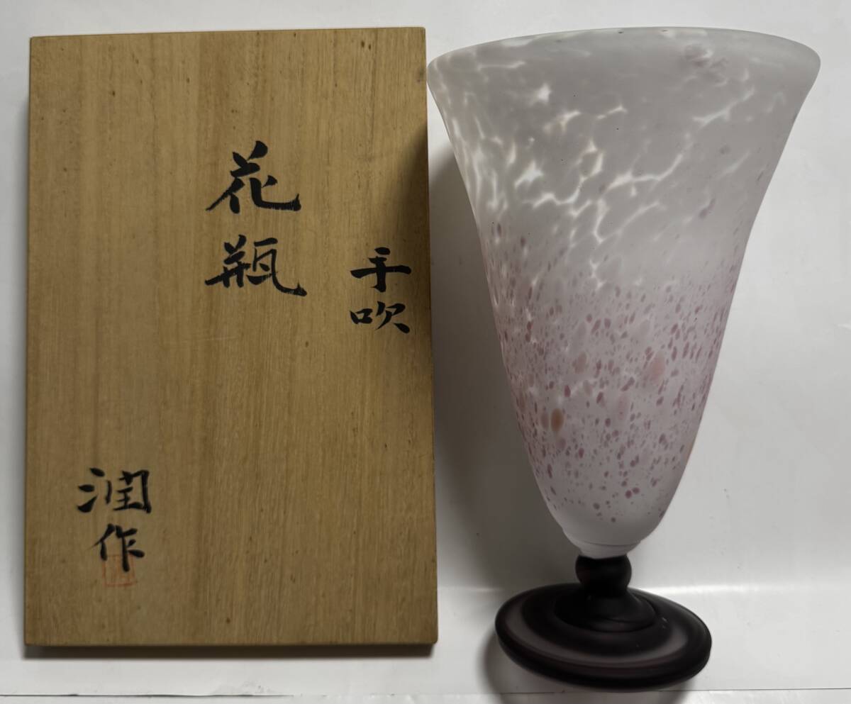 - 【真作保証】藤田潤 作 手吹 花瓶 高さ約26cm ガラス 花器 花入 フラワーベース 共箱 藤田喬平の息子