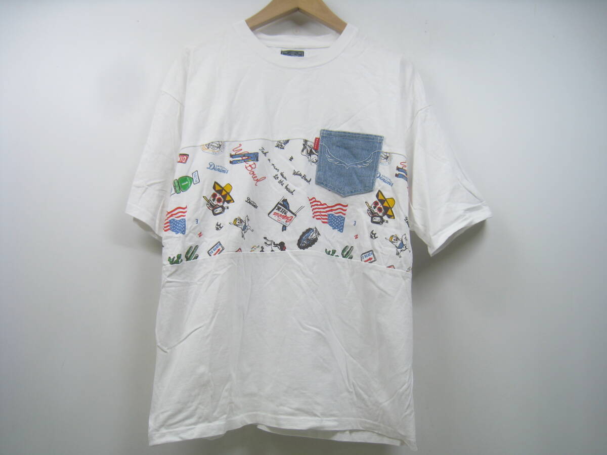 > RODEO CROWNS ロデオクラウンズ デニムポケット Tシャツ 半袖 バックロゴ 白 ホワイト サイズM