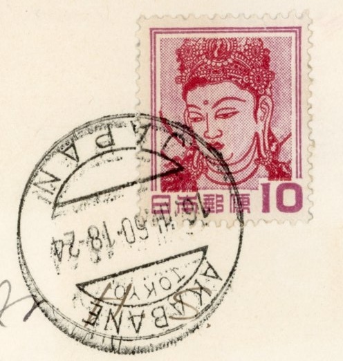 - A51 エンタイヤ AKABANE/1960.3.16 米宛 10円「菩薩像」貼