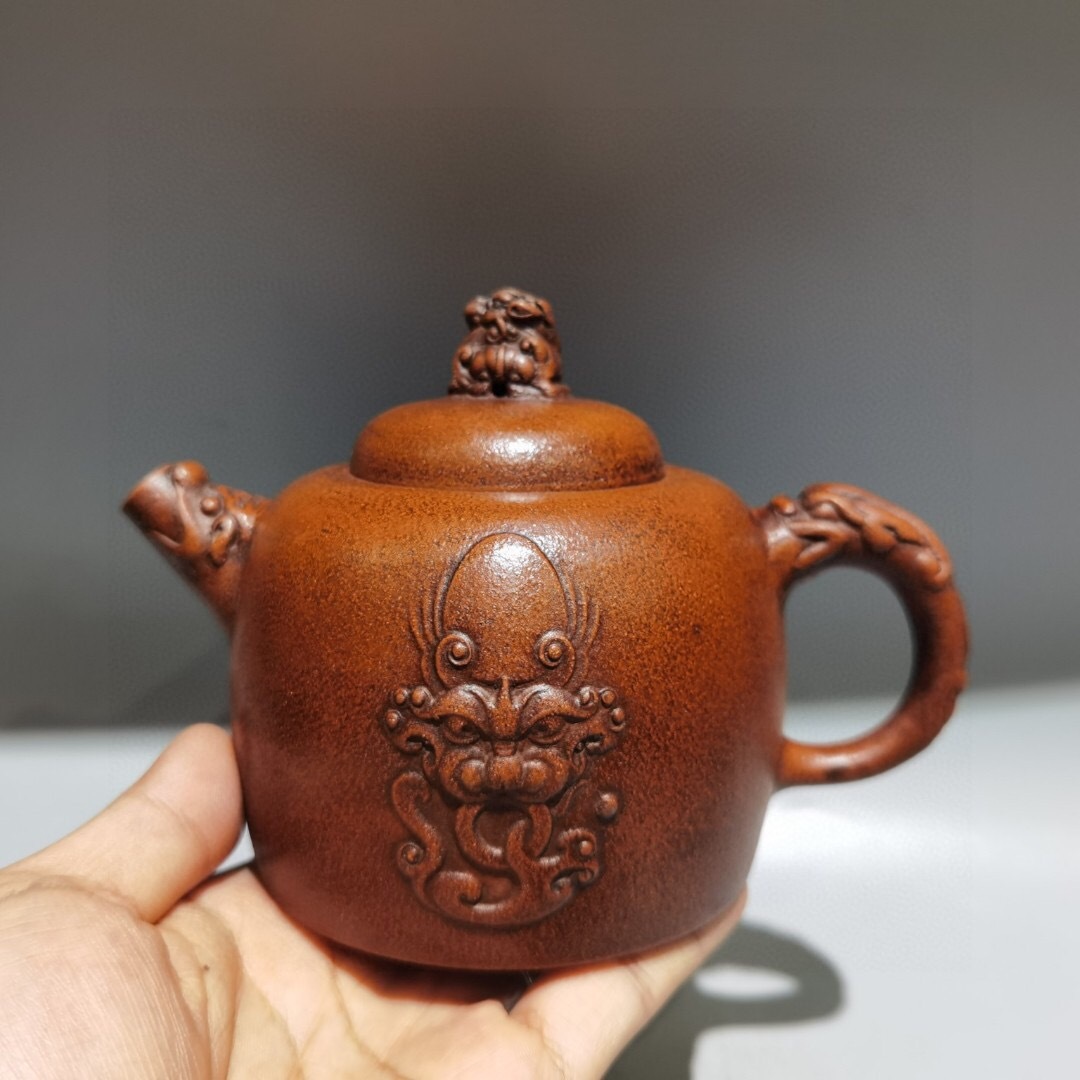 - 【超珍館蔵】紫砂壺 獣尊壺 陳鳴遠款 龍骨金砂 茶具 茶道品 置物 古賞物 古美術品 稀少珍蔵品