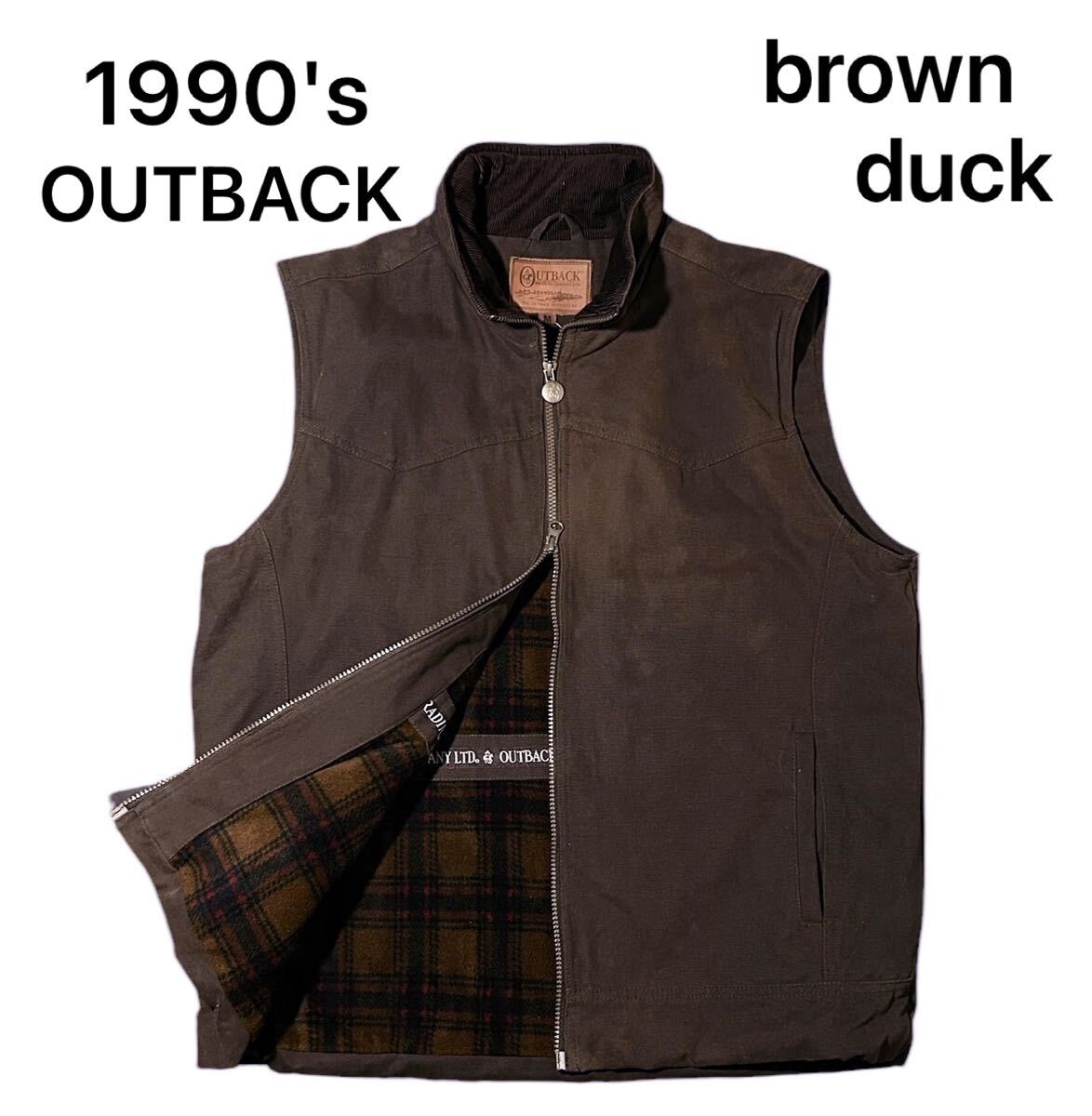 - 1990's OUTBACK アウトバック ヴィンテージ ダック 生地 ベスト アウトドア ワーク ブラウン 茶色 キャンバス ダブルジップ USA古着 Msize