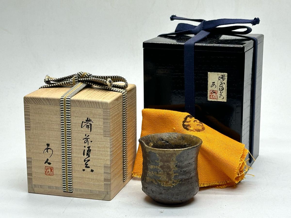 - 安倍安人 備前 酒呑 ぐい呑 共箱 共漆二重箱 ③