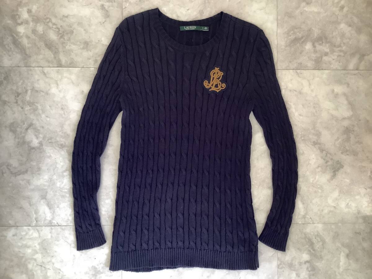 > RALPH LAUREN / ラルフ・ローレン ケーブルニット セーター ワッペンロゴ S ネイビー ユニセックス レディース メンズ