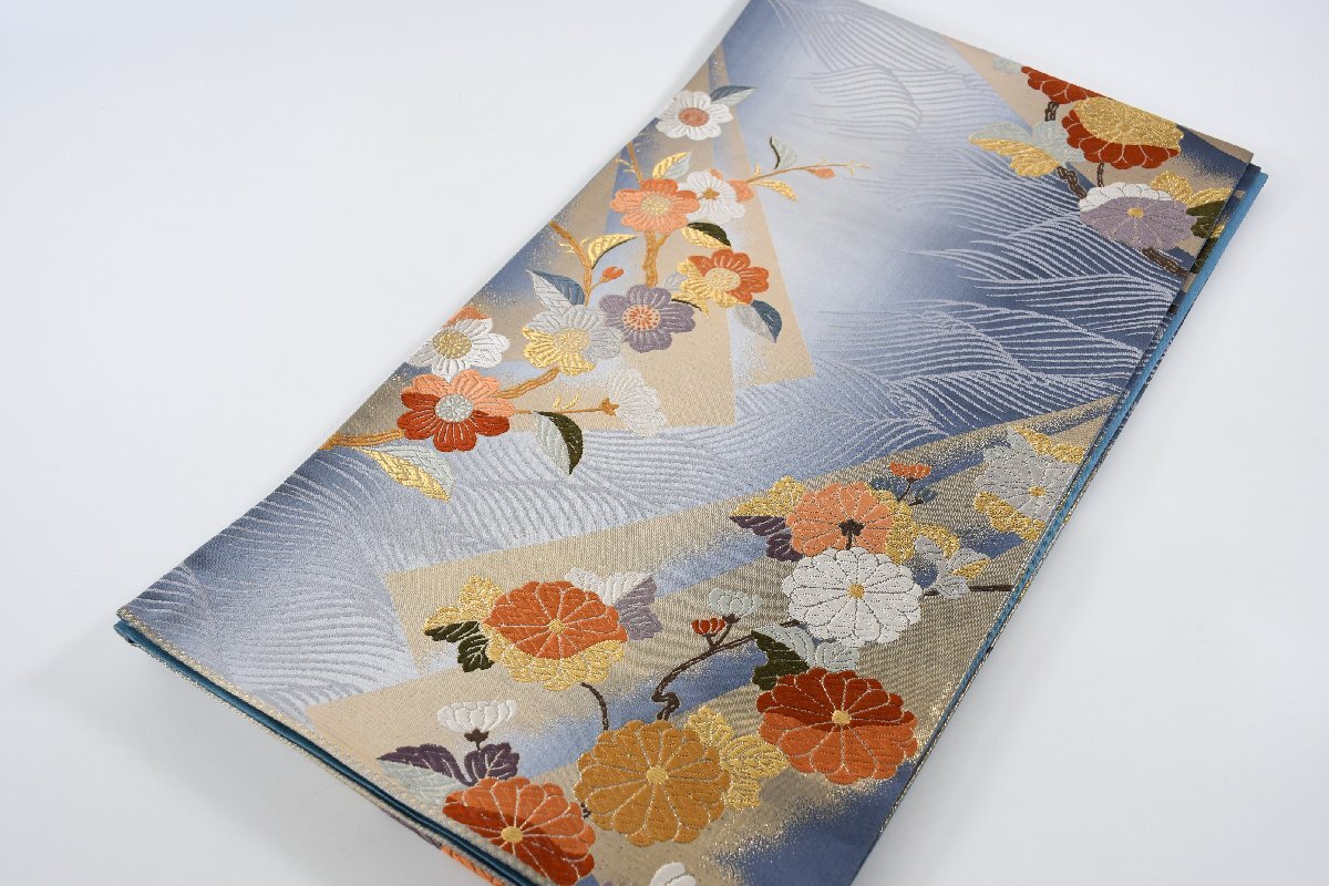 > 袋帯 六通柄 花 菊 暈し 帯丈445cm ★着物屋 ne-14251 桜庭呉服店