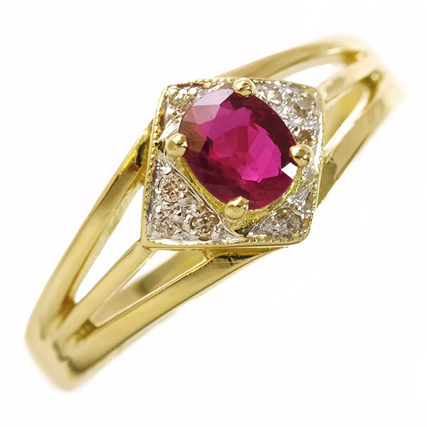 - 送料無料 本物 ルビー ダイヤモンドリング 指輪 750 K18YG イエローゴールド 11.5号 仕上げ済み レディースアクセサリー エレガント