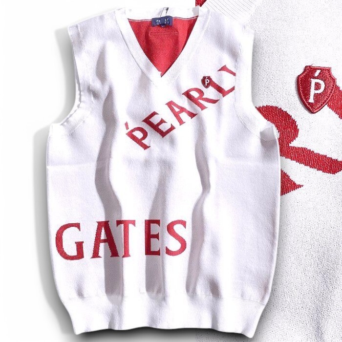 - PEARLY GATES パーリーゲイツ 定価2.5万 春物 吸汗速乾 メゾンロゴ柄 Vネック ニットベスト ゴルフウェア 2173307 030 4 ▲028▼50219w05