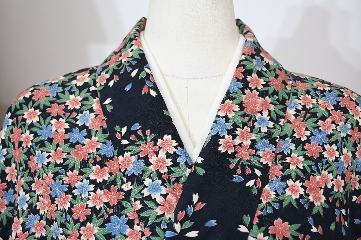 - 小紋 着物 袷 レトロ 葉桜 身丈155cm 裄丈66cm ★ kb-6548 桜庭呉服店