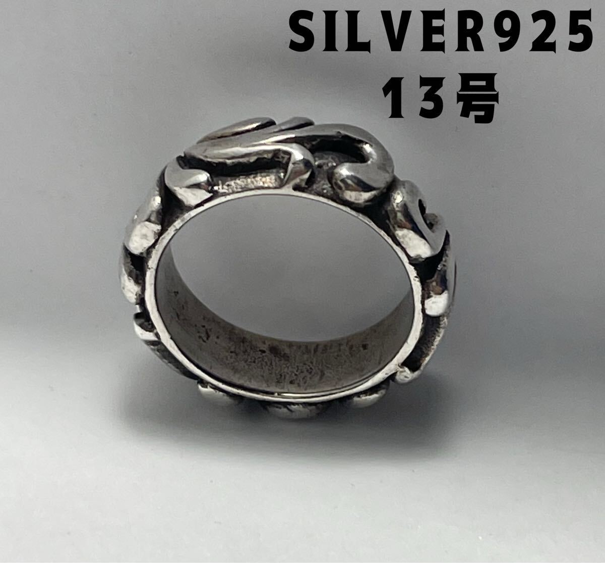 - YQ-oと84ごら ウネリシルバー925リング スクロールSILVER指輪バンド13号甲丸柄ありらご