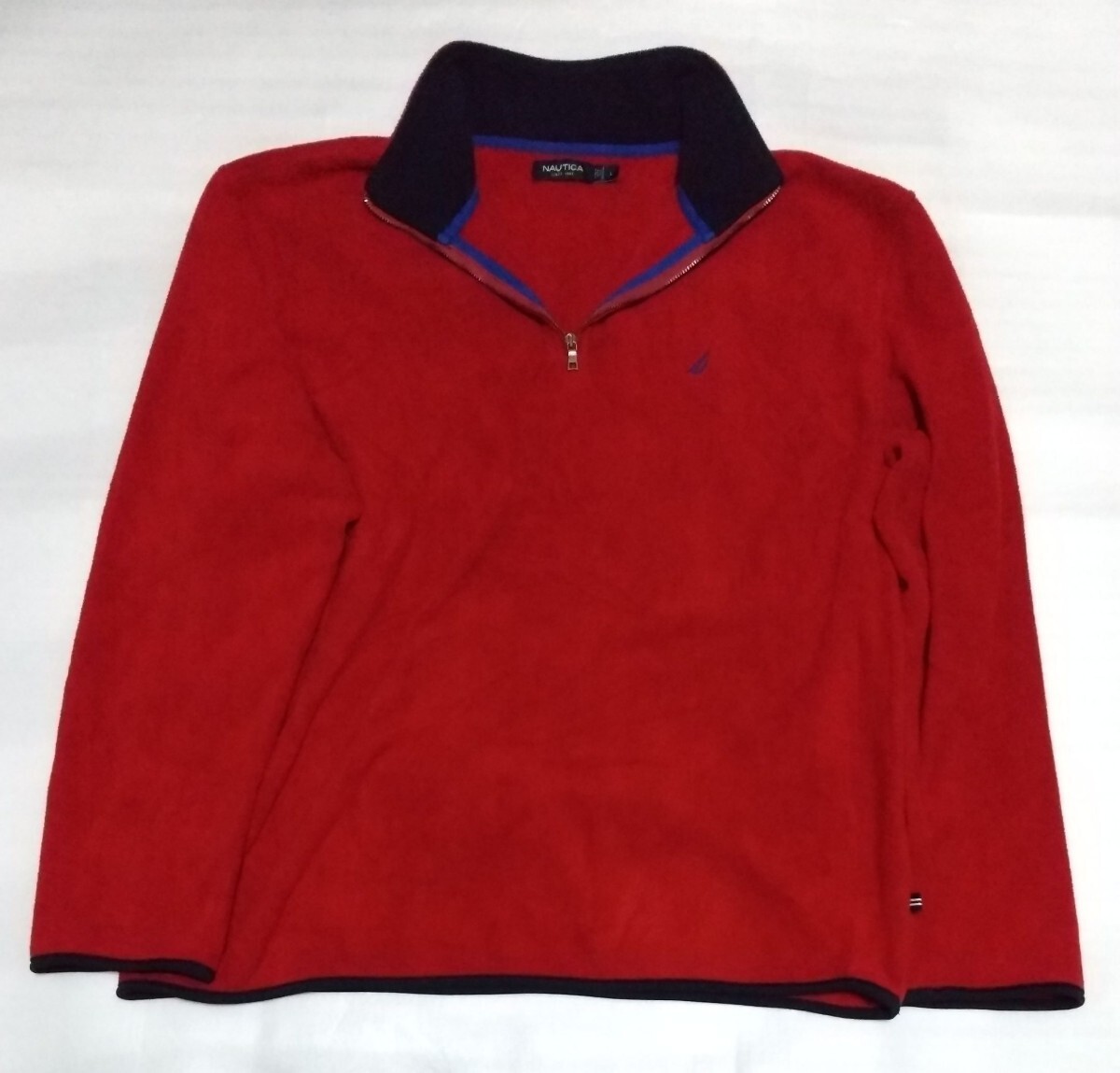 > ☆NAUTICA サイズL ハーフジップ フリース長袖スウェット紅レッド赤色カジュアル紺スポーツ洗濯済ファッション ウェア ブランド ノーティカ