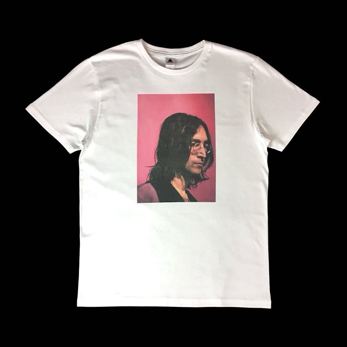 > 新品 John Lennon ジョンレノン BEATLES ビートルズ ヴォーカル ギター イマジン 丸メガネ ピンクフレーム Tシャツ オーバーサイズ XL(LL)