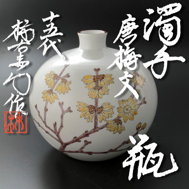 > ★【古美味】十五代酒井田柿右衛門作 濁手唐梅文瓶 茶道具 保証品 MUr3