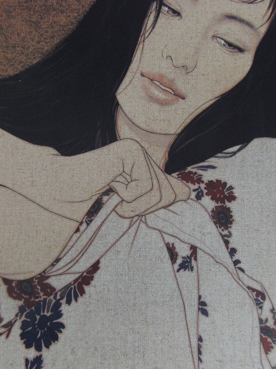 - 池永康晟、【いのちけずること・まりえ】、希少な額装用画集より、厳選、新品額装、マット額装付、状態良好、美人、日本人画家