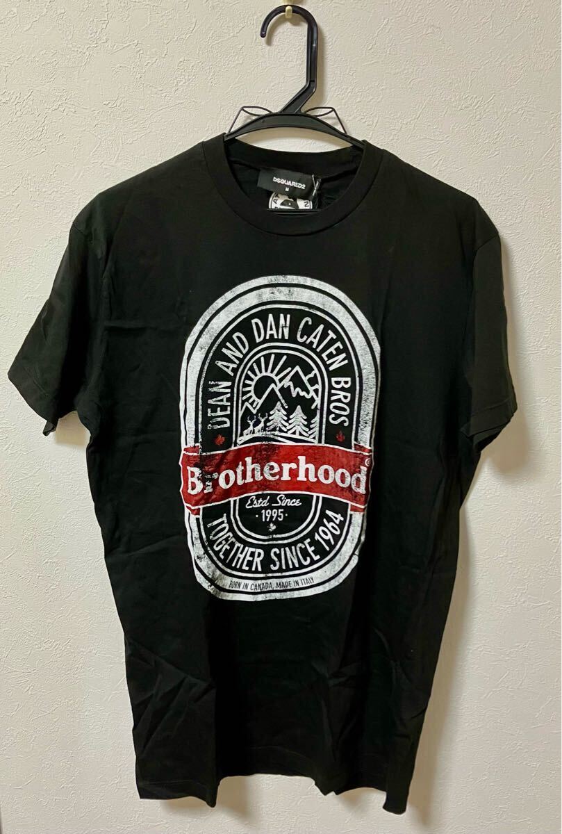 - 【新品タグ付】DSQUARED2/ディースクエアードTシャツ(Mサイズ)/ロゴ /プリント/イタリア製/半袖/黒/ブラック