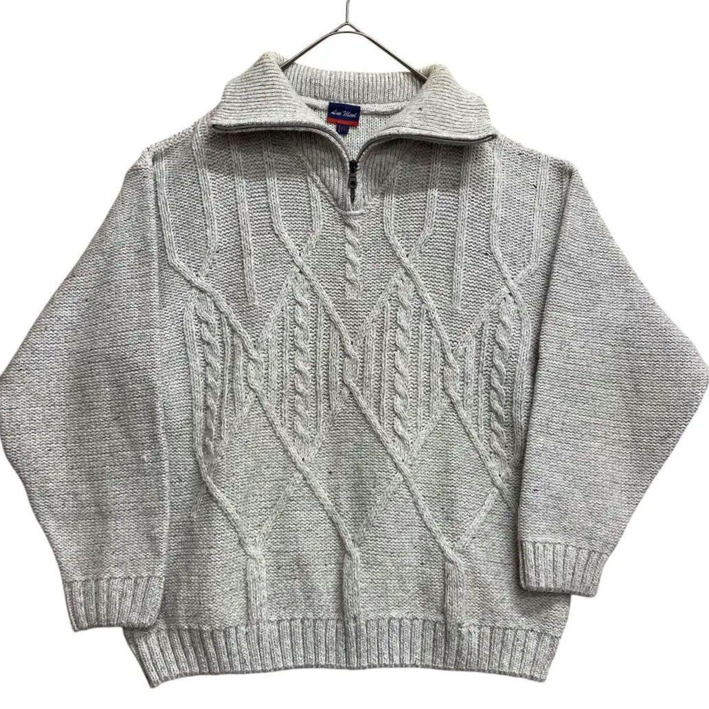 - メンズニット セーター ハーフジップ L 灰色 メリーノウール混合【2312】