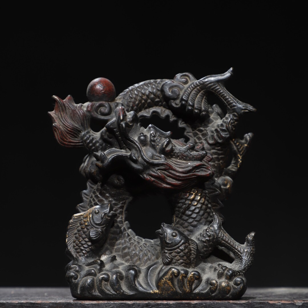 - 『館蔵珍品 銅製 拓金 龍魚』置物 賞物 貴重物品 収蔵品 中国古美術